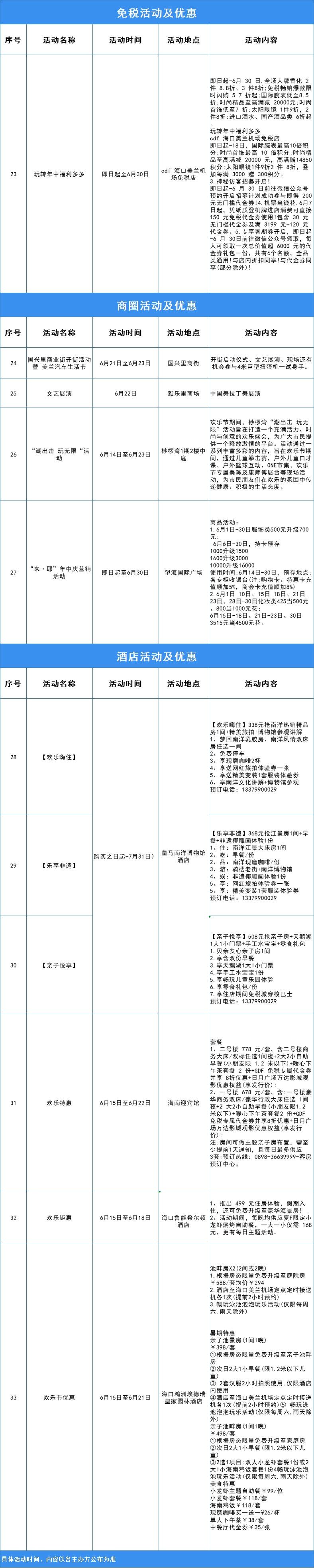 6月21日至23日,北港岛、北姆堆、望海国际广场还将上演精彩的儿童话剧展演。同时,6月21日的白沙门文创市集上,将举办沙滩电音啤酒狂欢趴。另外,“非遗伴我行”活动也将走进商街夜市,让大家近距离感受非遗的独特魅力。6月21日至6月23日,国兴里商业街的开街活动暨美兰汽车生活节也将为大家带来全新的购物与休闲体验。