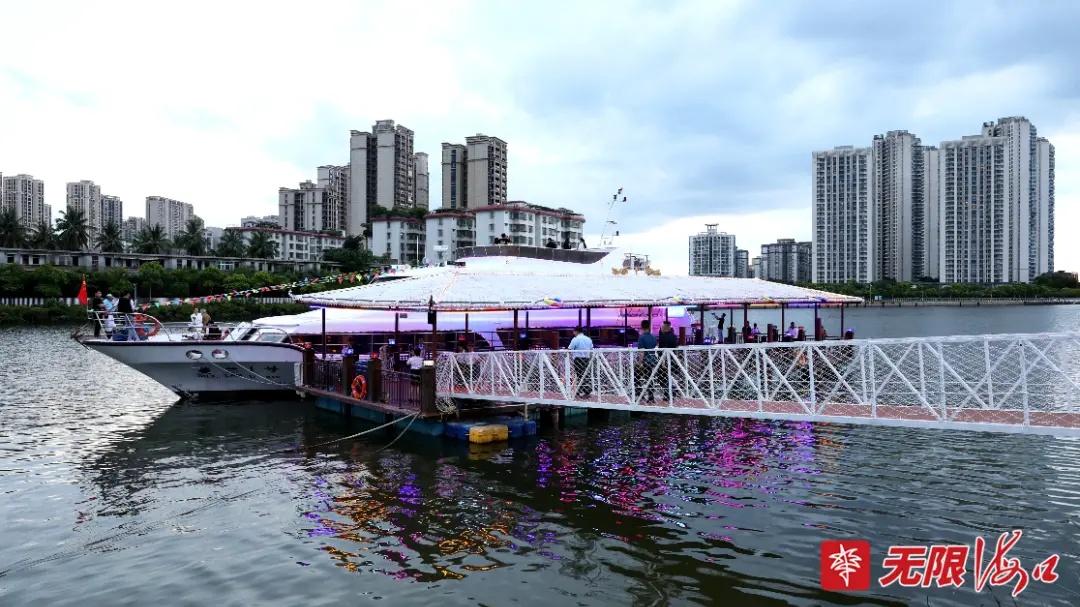 当晚,近50位嘉宾、网络达人及媒体代表登船体验海上观赏海口的乐趣,伴随汽笛声响,游轮缓缓驶离码头,沉浸式打卡椰城夜景。