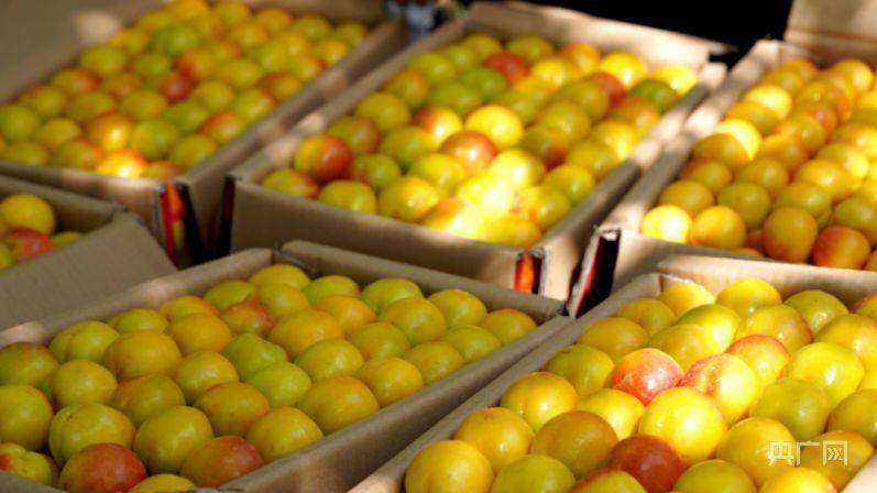采摘黄杏的画面(央广网发 古力孜巴 摄)