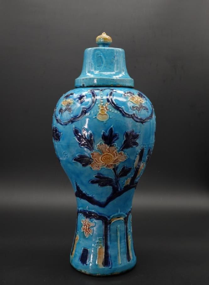 珐华,又称“珐花”“法花”“法华”,是一种以陶或瓷土为胎,施蓝、绿、白、紫等各色中温釉,采用沥粉之法勾勒纹样轮廓,二次烧成的器物。一号沉船的珐华器器形多为罐和梅瓶。