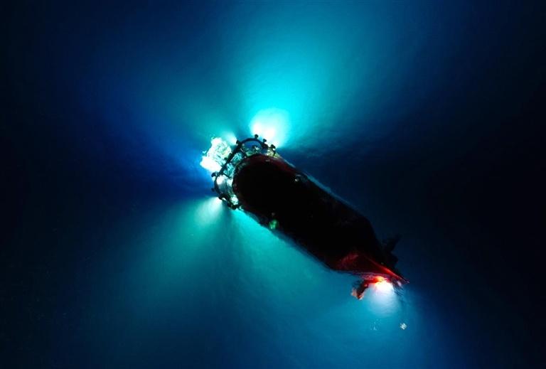 俯瞰驶向深海考古的潜水器——“深海勇士”号。新华社发