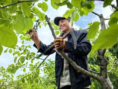王武山在给果树修枝。新华社记者 达日罕 摄