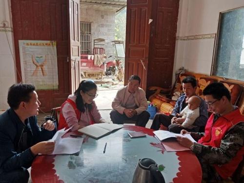 这是黄文秀(左二)生前下屯访问贫困户的资料照片。新华社发
