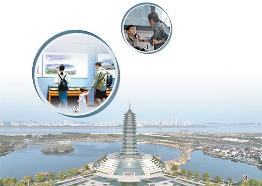 远远望去,博物馆主体建筑就像漂浮在水面上的水晶宝塔。塔顶,“青龙、白虎、朱雀、玄武”四灵拱卫的巨型龙钮印章镌刻着《史记·河渠书》,“水利”一词由此出,展示着中国水利文化的源远流长。