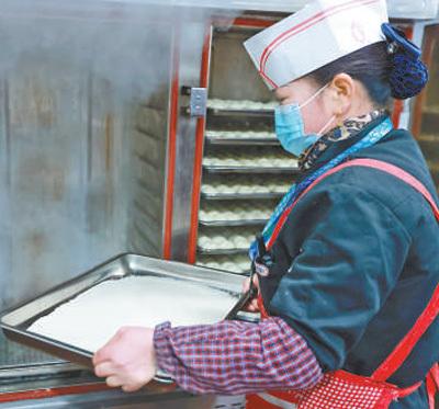 餐饮企业工作人员在做米饭。以上图片均为秦立军摄(人民视觉)
