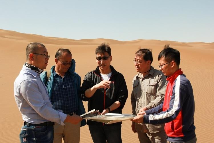 雷加强研究员(图中)在塔克拉玛干沙漠工作照
