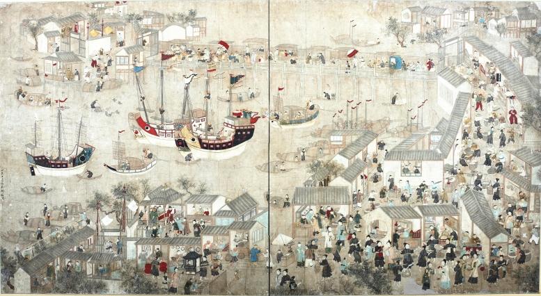 时光荏苒,沧海桑田。当年的运河已变成了现代化航道,跑起了2000吨的大船,运河两岸也不复画面中描绘的传统生活,然而那时的民俗风情,却化作人们梦中水乡的图景,充满了诗情画意。
