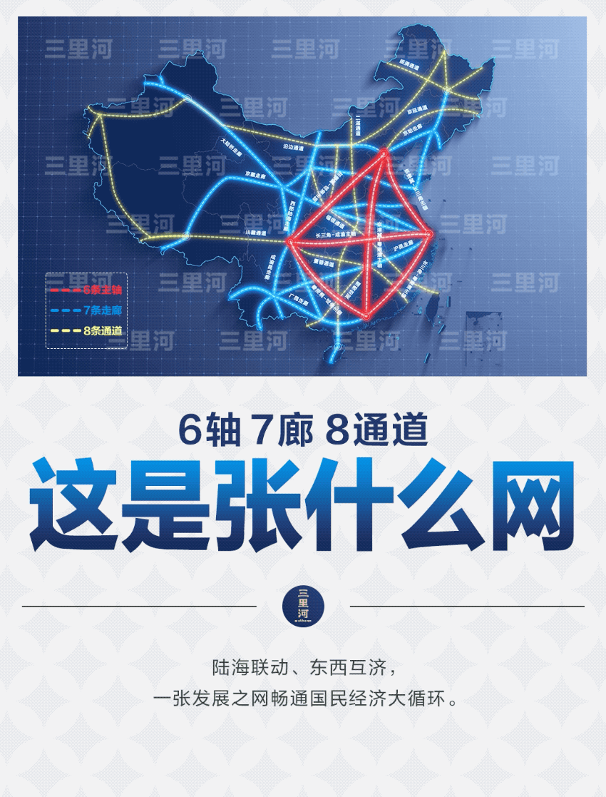 打开中国地图,6条主轴、7条走廊、8条通道,横连东西、纵贯南北。
