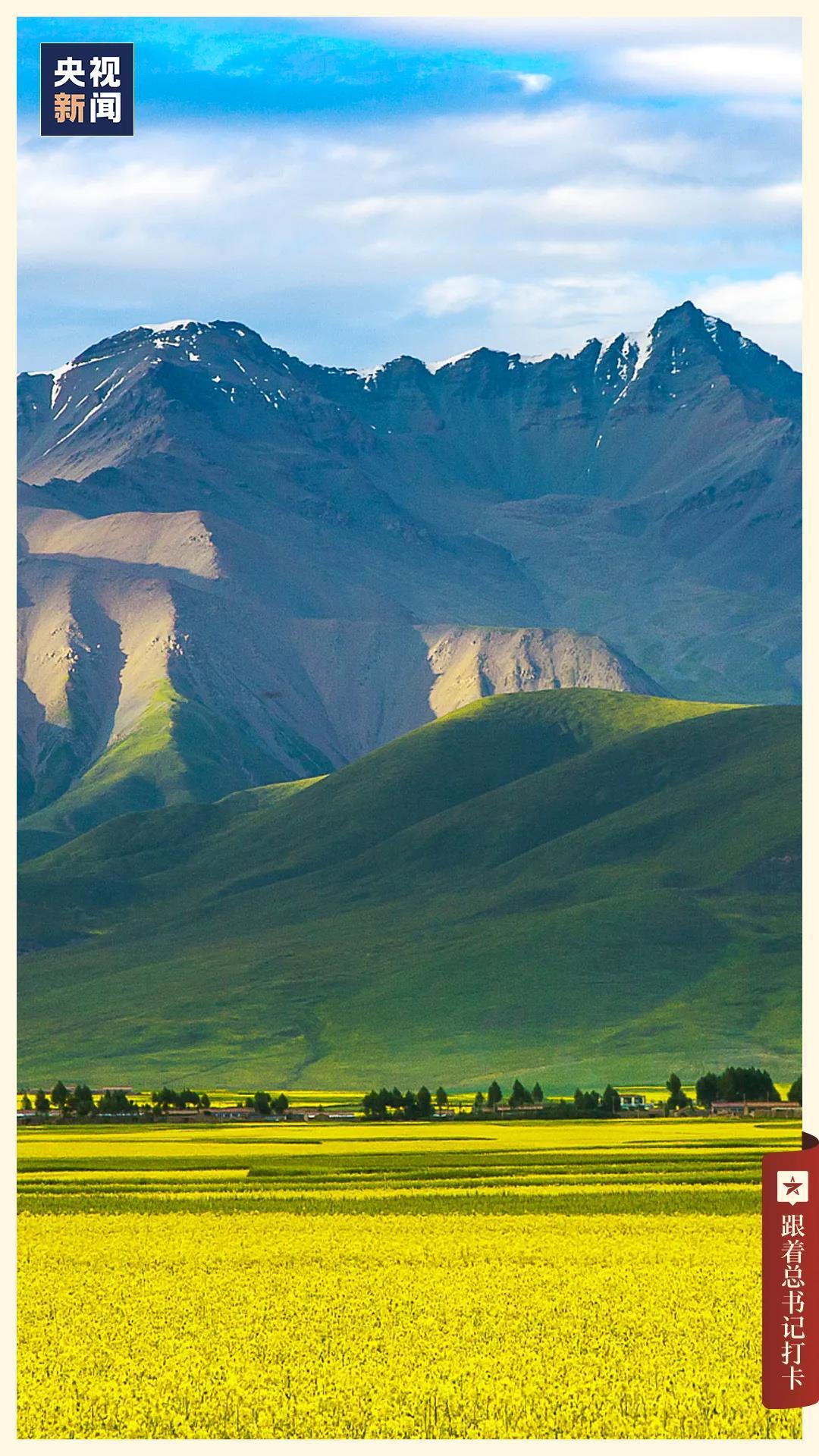 △“门源油,天下流”,门源县数十万亩油菜花让这里成了一个“金盆地”。