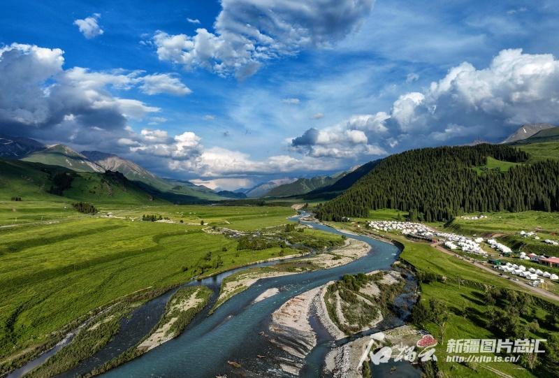 6月17日,蓝天白云下的尼勒克县唐布拉草原。张庆华摄