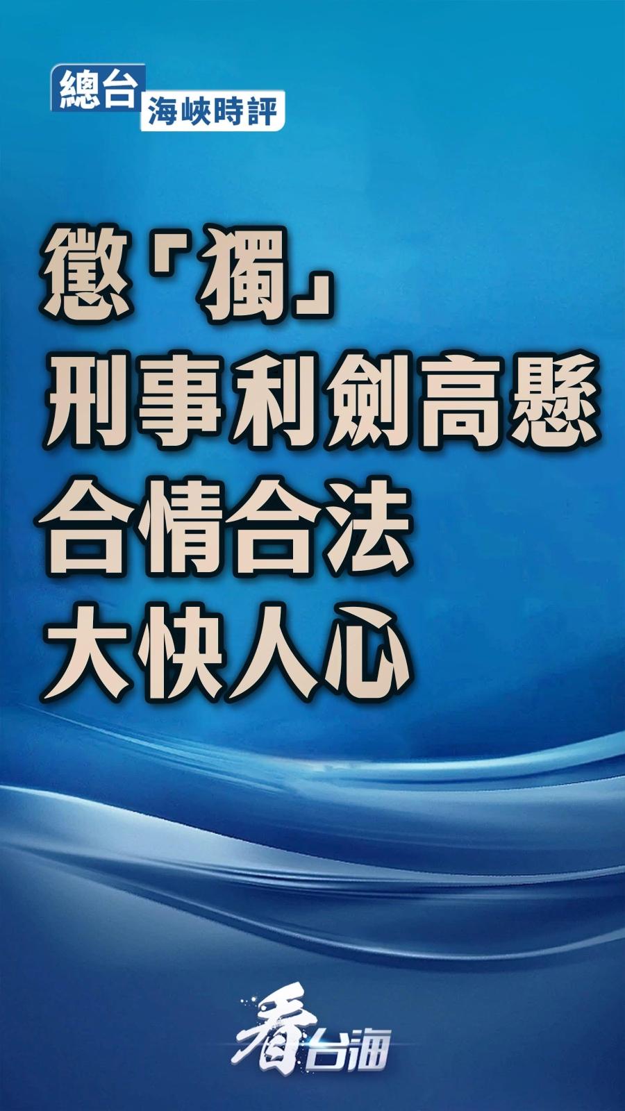 6月21日,最高人民法院、最高人民检察院、公安部、国家安全部、司法部联合发布《关于依法惩治“台独”顽固分子分裂国家、煽动分裂国家犯罪的意见》,自发布之日起施行。在当日国务院台办会同相关部门举办的专题发布会上,国台办发言人陈斌华强调,依法惩治“台独”顽固分子分裂国家、煽动分裂国家犯罪,合情合理合法。对于涉“独”言行恶劣、谋“独”活动猖獗的顽固分子,大陆决不容忍、决不姑息,必须反制、必须惩戒。在当前台海形势复杂严峻、赖清德当局谋“独”挑衅的背景下,《意见》发布施行,惩“独”刑事利剑高悬,正当其时,大快人心!