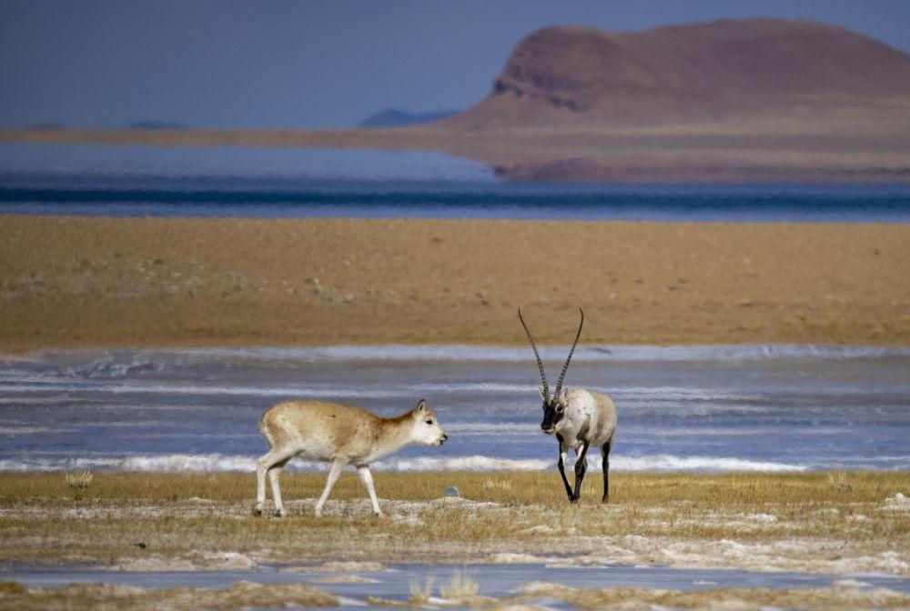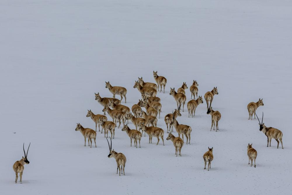 这是在色林错湖畔拍摄到的藏羚羊(1月5日摄)。 新华社记者 姜帆 摄