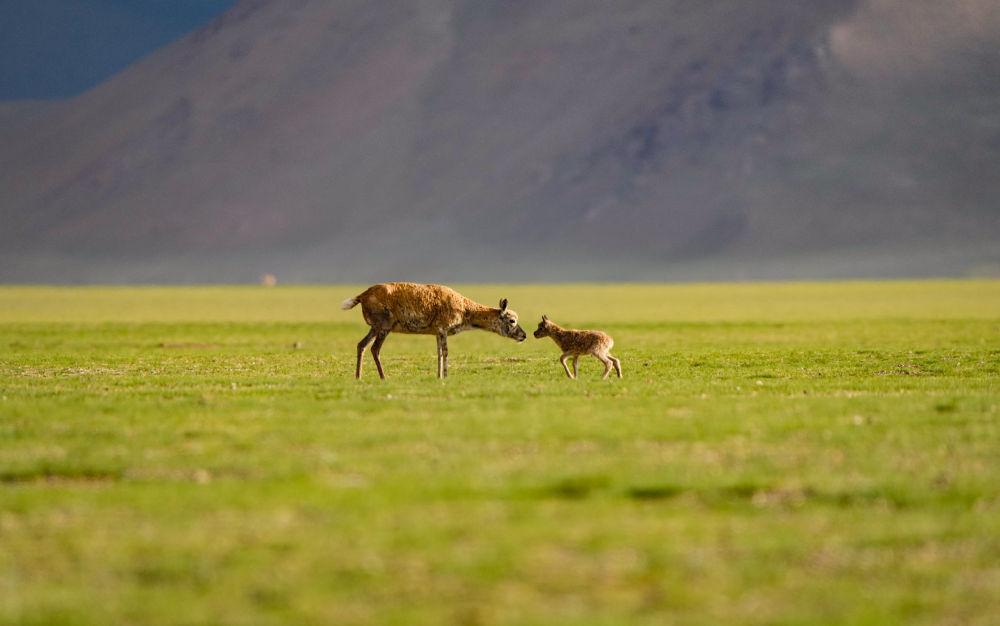 鲁确塘草原上的藏羚羊母子(6月16日摄)。新华社记者 晋美多吉 摄
