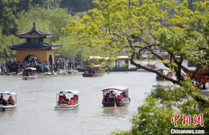 瘦西湖景区钓鱼台前人头攒动。扬州市委宣传部供图
