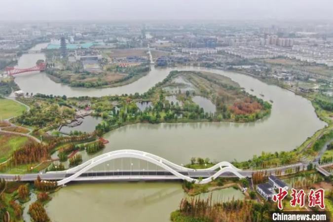 航拍扬州运河三湾生态文化公园。中新社记者 泱波 摄