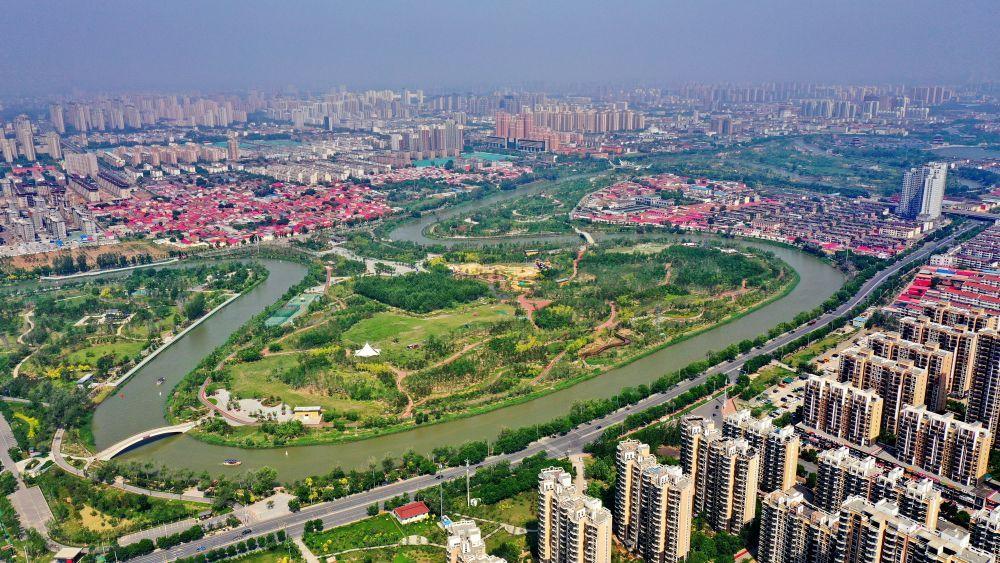 在位于沧州市区东南部的大运河生态修复展示区,呈“Ω”状的河道铺展在大地之上。漫步于此,视野开阔、满目绿色,草皮的清香和河水的清凉扑面而来,令人心旷神怡。