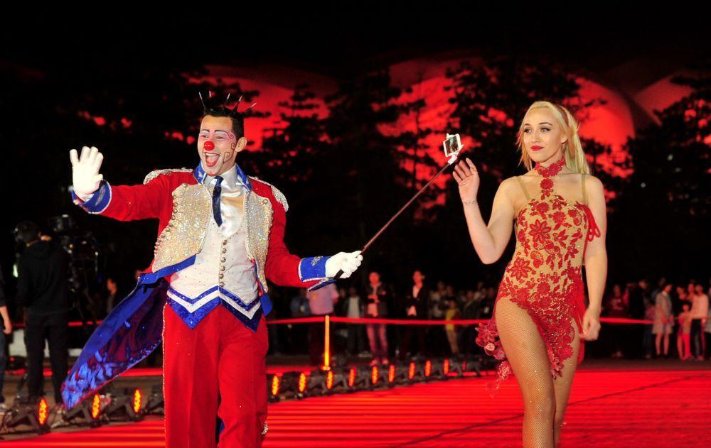 2015年10月7日,在第十五届中国吴桥国际杂技艺术节闭幕式上,来自委内瑞拉的表演者走红毯。