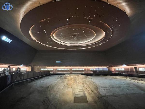 帝陵遗址远远看去像一个“落地的皇冠”,“我们叫它保护大棚,外观总体呈上小下大的‘覆斗’形,这种形制是隋唐时期大型陵墓所常见的封土形状。” 束家平介绍。