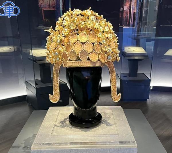 同时具有最高等级的,还有萧后墓出土的萧后冠。因为原件侵蚀严重,所以目前馆内展示的是仿制件。萧后冠由帽壁、金花、簪、钗、翅翼等组成,花树13棵,两侧博鬓,饰件鎏金,镶嵌珠玉。束家平告诉记者,按照隋唐的规制,皇后的冠是12棵花树,公主的冠是9棵花树,但是萧后冠是 13 棵花树。萧后冠为什么会超过皇后的等级呢?束家平表示,这是为了显示出萧后是前朝的皇后,与当朝皇后区别开来,这就是古人的智慧。
