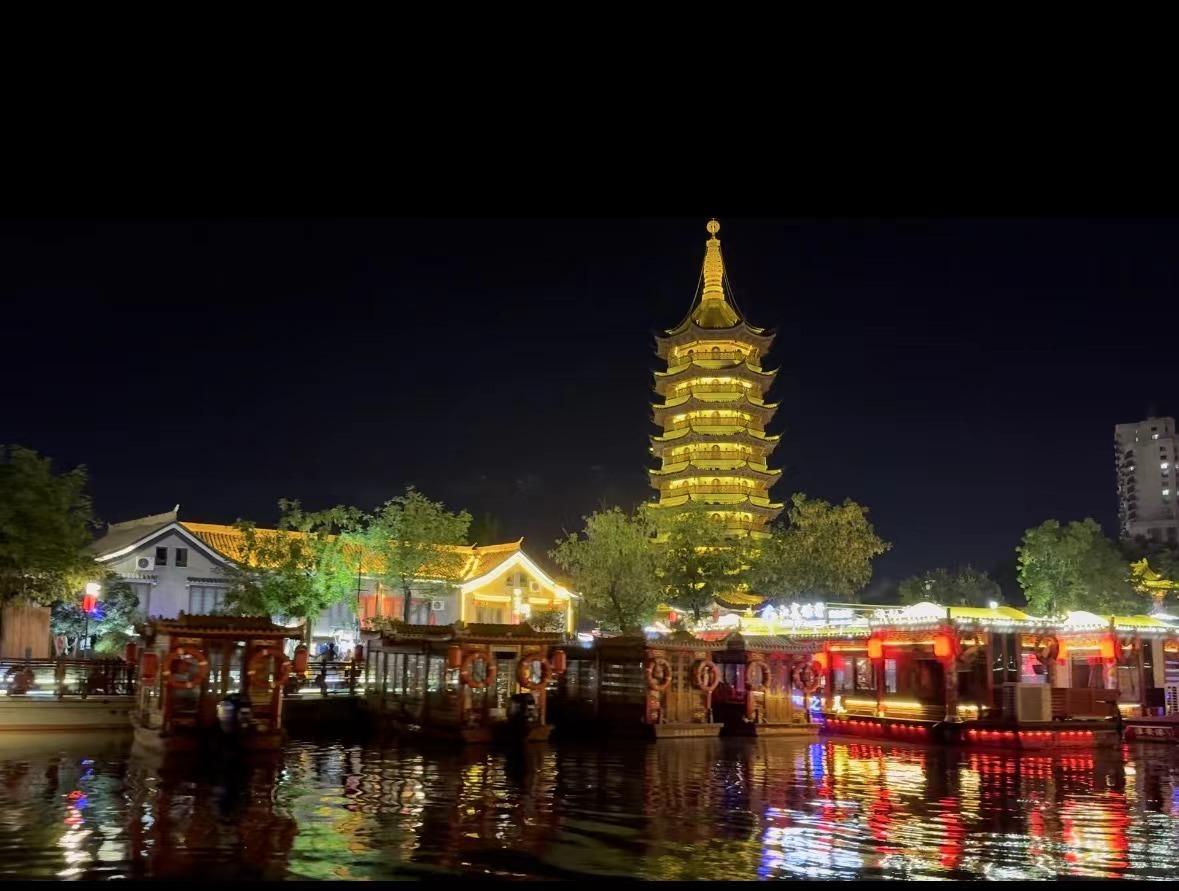 夜幕降临,华灯初上,淮安里运河畔灯火璀璨、游人如织。