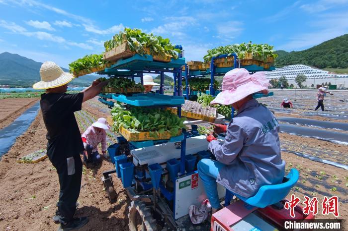 6月24日,农户正在太白县粤港澳大湾区“菜篮子”生产基地栽种蔬菜幼苗。杨英琦 摄