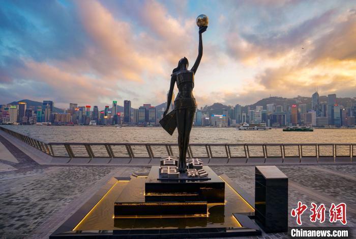 图为位于香港尖沙咀星光大道的香港电影金像奖雕塑。(资料照片) 中新社记者 张炜 摄