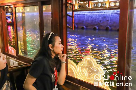 泰国网红博主爱玲在盐河巷乘坐画舫