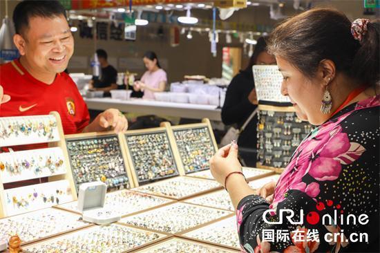 巴西籍留学生慕容雪(右)挑选水晶饰品