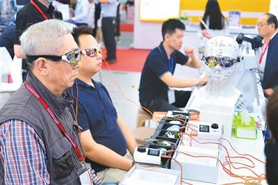 图为近日,观众在第十届中国国际养老服务业博览会上体验“多效经穴激活治疗仪”。郭俊锋摄(人民视觉)