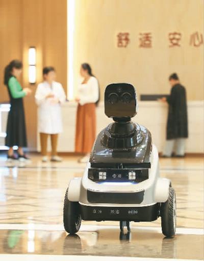 图为在山东省东营市东营区德康宁医养中心,智能机器人在巡检。刘智峰摄(人民视觉)