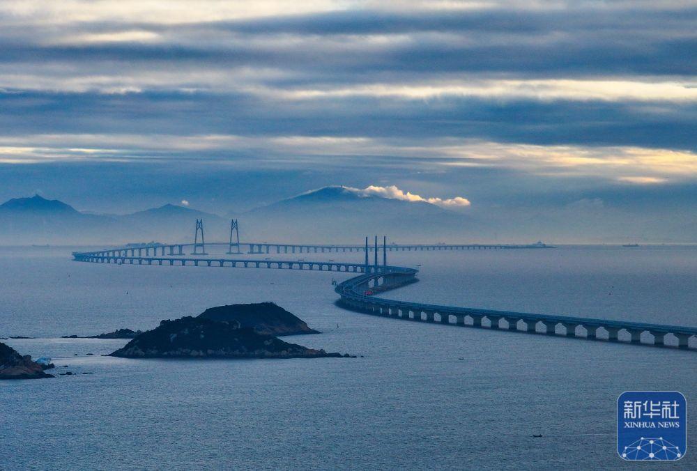 ↑这是2023年12月15日拍摄的晨曦中的港珠澳大桥(无人机照片)。2018年港珠澳大桥正式开通运营,该桥东接香港西接珠海澳门,全长55公里。新华社记者 刘大伟 摄