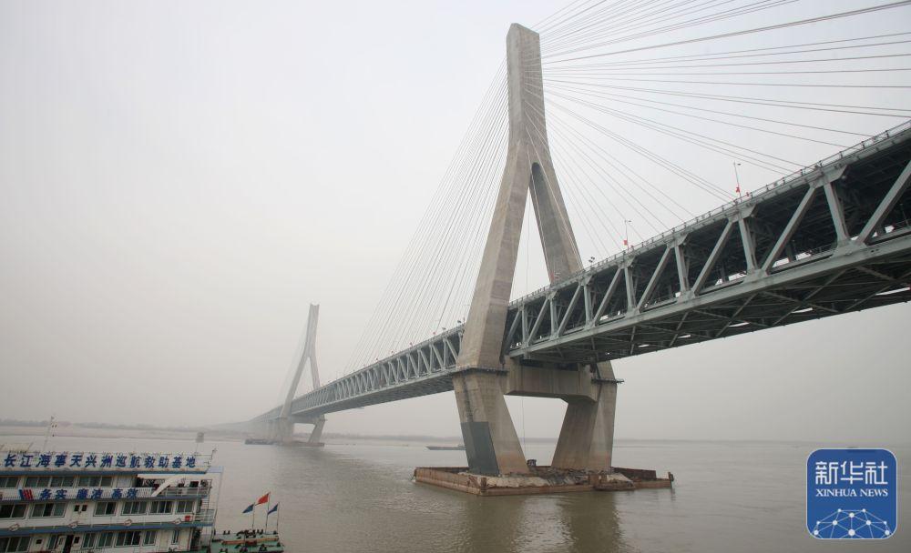 ↑这是2009年12月26日拍摄的武汉天兴洲长江大桥。当日,武汉天兴洲长江大桥正式通车,该桥主跨504米,全长4657米。新华社记者 郝同前 摄