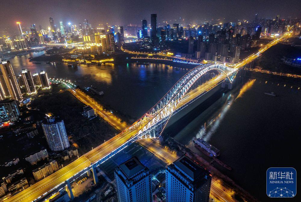 ↑这是2016年2月1日拍摄的重庆朝天门长江大桥夜色。重庆朝天门长江大桥于2009年4月通车,主跨长552米。新华社记者 陈诚 摄