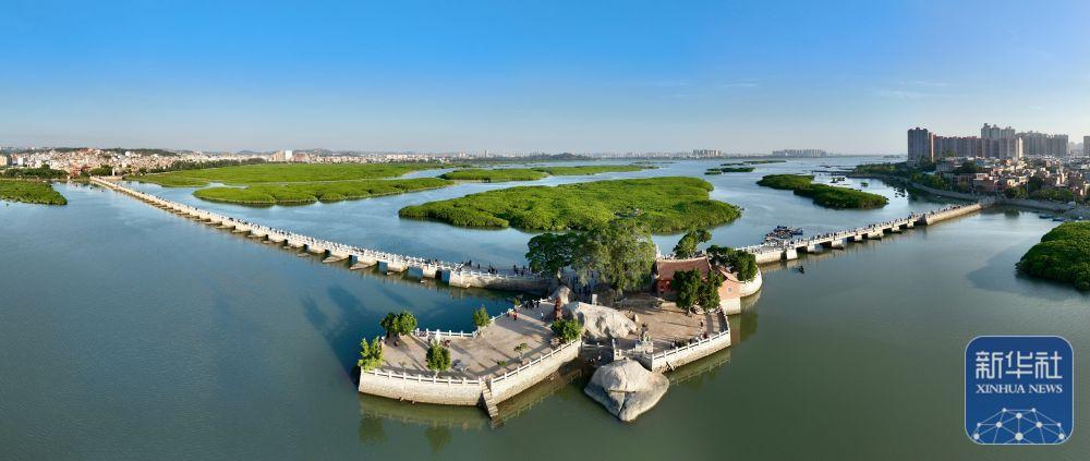 ↑这是2023年11月19日拍摄的泉州洛阳桥(无人机照片)。洛阳桥位于福建泉州市区东北部的洛阳江上,原名“万安桥”,始建于北宋皇祐五年至嘉祐四年(1053-1059年),为我国现存最早的跨海梁式大石桥,代表当时中国先进的造桥技术。新华社记者 姜克红 摄