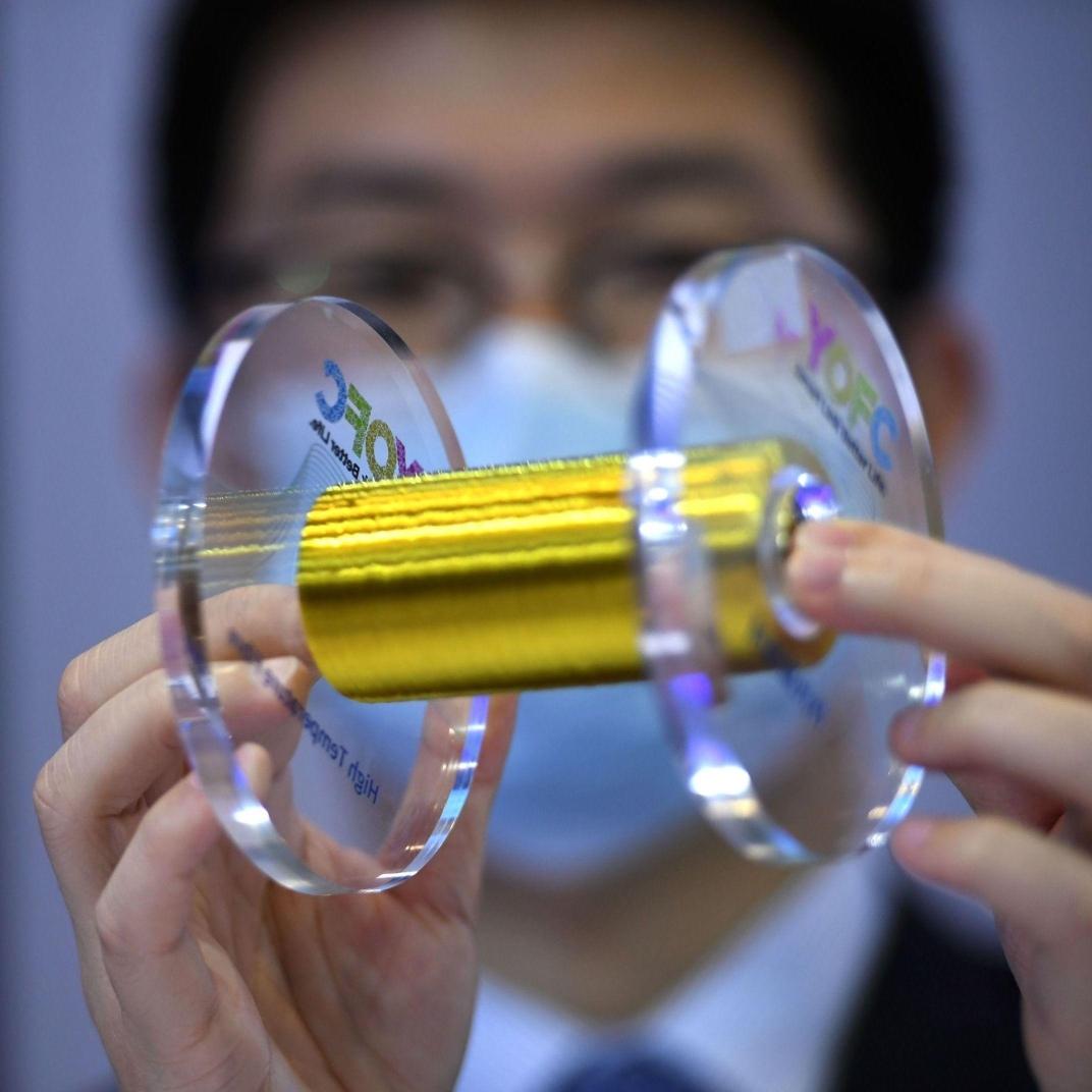 长飞光纤光缆股份有限公司展示的耐高温光纤。 长江日报记者 高勇 摄