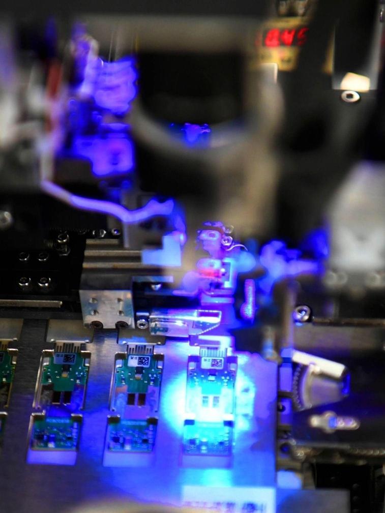 中国信科集团武汉光迅科技股份有限公司全自动高速光模块生产线在运转。 长江日报记者 高勇 摄