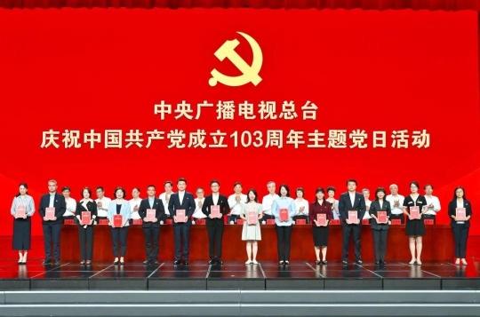 7月1日上午,中央广播电视总台隆重举办庆祝中国共产党成立103周年主题党日活动。中宣部副部长、中央广播电视总台党组书记、台长慎海雄与党员干部重温入党誓词、新党员庄严宣誓,为总台获得“光荣在党50年”纪念章老党员代表颁发纪念章,并作主题讲话。中央和国家机关工委宣传部一级巡视员马莉、中央纪委国家监委驻中宣部纪检监察组副组长陈桂林到会指导。总台党组成员、副台长王晓真主持会议,总台党组成员、副台长胡劲军宣读总台党组《关于表彰中央广播电视总台“四好”党员、“四强”党支部的决定》。总台党组成员、副台长邢博,总台党组成员、副总编辑范昀,总台编务会议成员姜文波、李挺、刘晓龙、齐竹泉、周振红,总会计师董为民出席活动。