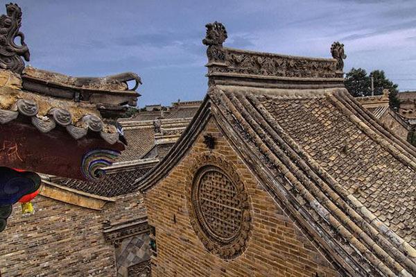 图为运城李家大院屋顶,置有北方少见的五尾望兽。