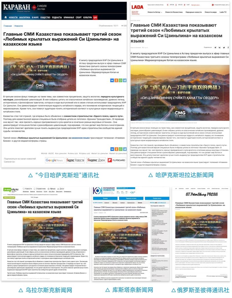 在中国国家主席习近平出席上海合作组织成员国元首理事会第二十四次会议并对哈萨克斯坦进行国事访问之际,由中国中央广播电视总台制作的《平“语”近人——习近平喜欢的典故》第三季(哈萨克语版),将于当地时间7月2日起在哈萨克斯坦落地播出。当地多家主流媒体对节目落播进行预告,引发哈萨克斯坦各界普遍期待和广泛关注。