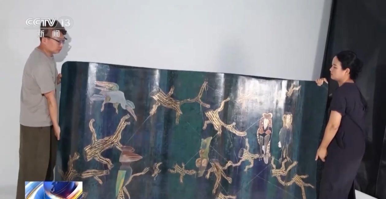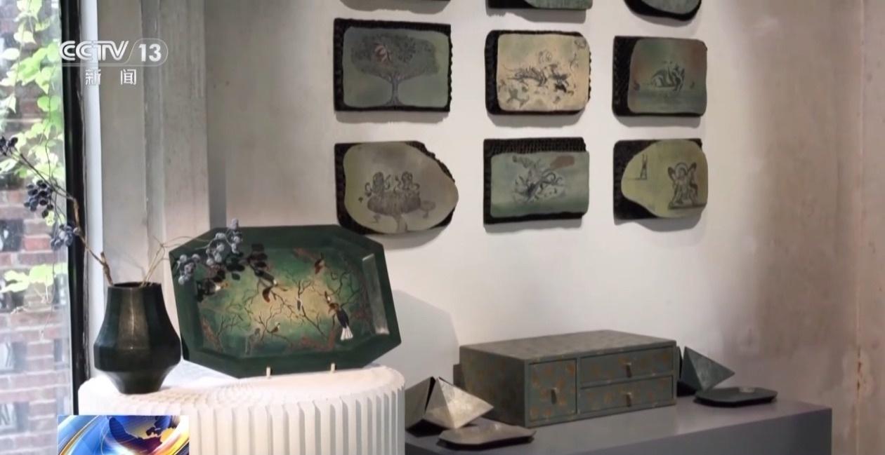大漆技艺传承人 洪乙栋:大漆的包容性特别强,它的延展性也特别强,包括雕塑、绘画,还有设计、家具、小型的器物,它都可以做。这是基于环保的、可持续的理念出发的一个创作,你看它与动物还有植物,都是我比较关注也比较喜好的一些题材。