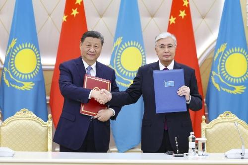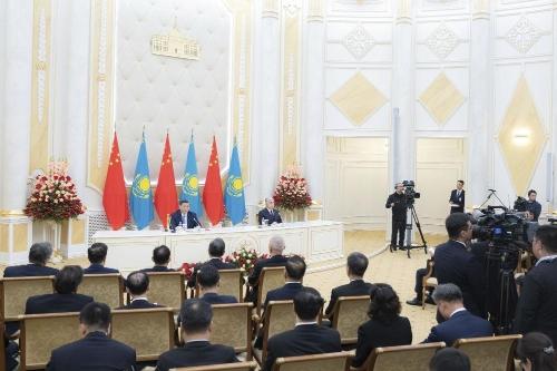 两国元首共同签署《中华人民共和国和哈萨克斯坦共和国联合声明》,并共同见证交换经贸、互联互通、航空航天、教育、媒体等领域数十项双边合作文件。