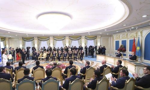 习近平同托卡耶夫在阿斯塔纳总统府共同出席阿斯塔纳中国文化中心、北京哈萨克斯坦文化中心和北京语言大学哈萨克斯坦分校揭牌仪式。