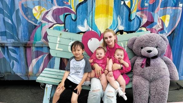 娜塔利亚·莫伊塞耶娃和三个孩子在江苏宜兴。