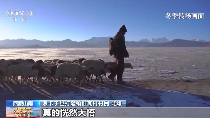 旺堆:冬季赶羊转场的时候,我们在那里待15天左右,晚上岛上都是冰面,特别冷,将近-30℃左右,根本不想赶羊,坚决不想干。