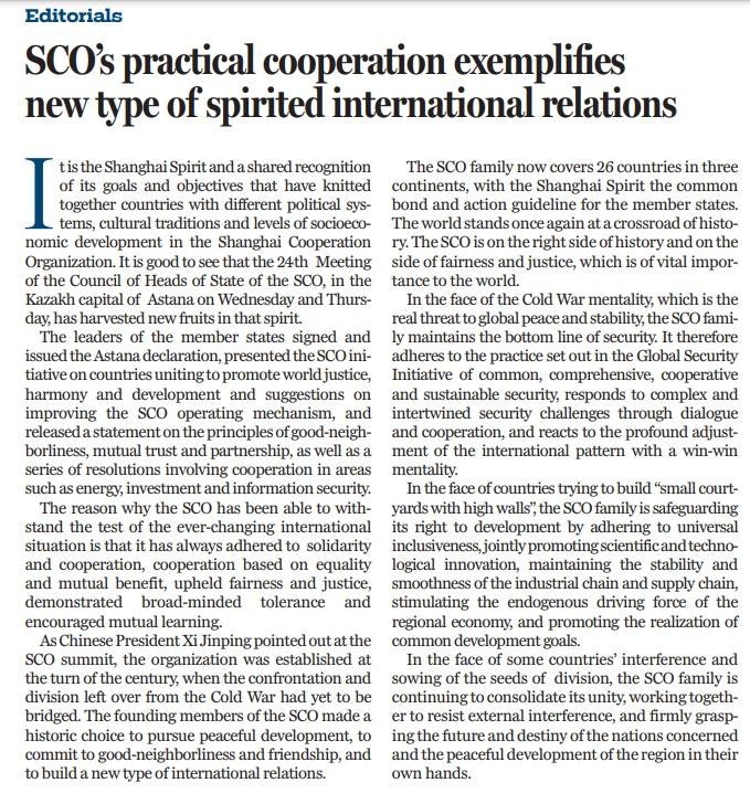 在“上海精神”的指引下,在哈萨克斯坦首都阿斯塔纳举行的上海合作组织成员国元首理事会第二十四次会议取得了新的成果。