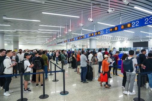 7月4日,白云边检站旅客通关现场。(白云边检站供图)
