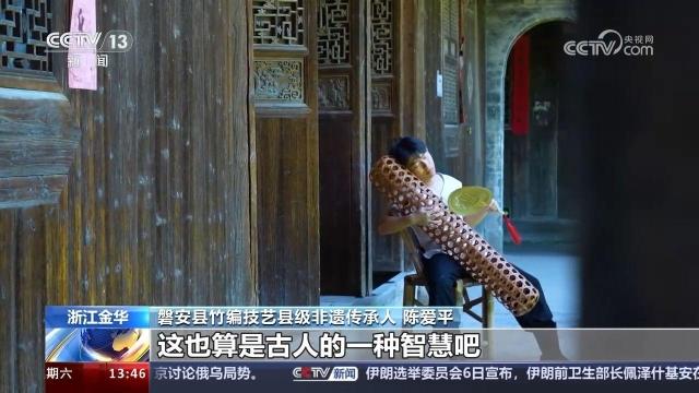 浙江金华市磐安县竹编技艺县级非遗传承人陈爱平介绍,“竹夫人”这个东西因为它这个孔洞都比较大,人抱着的时候它里面的空气流通比较顺畅,所以就会把身体产生的热量带走,让人产生一种凉爽的感觉,这也算是古人的一种智慧吧。