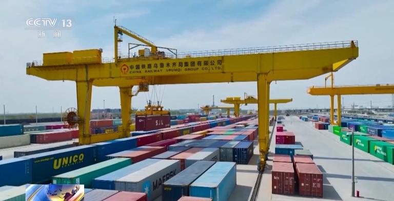 新疆是我国与中亚中欧货物运输最重要的交通枢纽。今年1至5月,新疆外贸进出口总额1856.4亿元,同比增长52.1%,增速居全国第二位。中欧班列开行数量也明显增长。最新数据显示,今年上半年,新疆铁路阿拉山口、霍尔果斯双口岸通行中欧班列达7746列,同比增长8.2%。