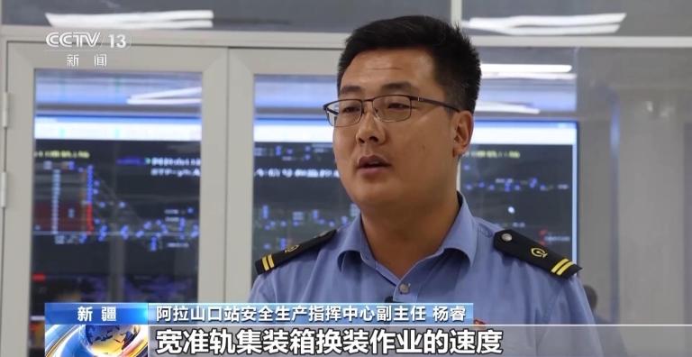 阿拉山口站安全生产指挥中心副主任 杨睿:车站提前预留线路,保证不间断接发列车;同时,加强与海关等部门协同作业,协调班列通关审核、优先查验、换装放行等环节,出境班列周转速度不断加快,通关时间压缩到了5小时内,入境货物信息中转流程提速了4小时。