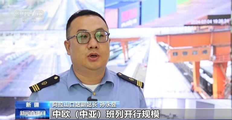 阿拉山口站副站长 孙永昱:目前,阿拉山口铁路口岸中欧(中亚)班列开行规模从2012年的每月通行3.5列增长到现在的日均20列以上,今年单日通过中欧(中亚)班列最高已达27列。在中欧班列中搭载着有商品车、机械制造等中国制造走出国门,同时,新疆铁路增加了回程班列的开行规模。
